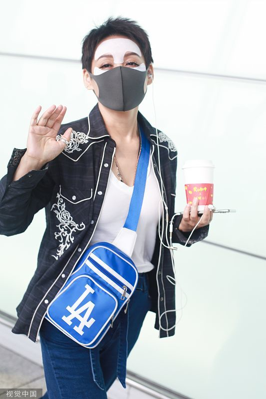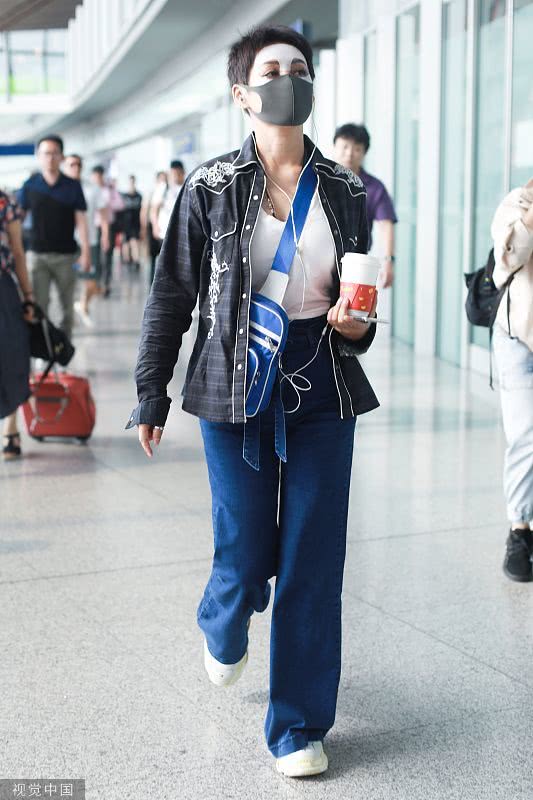 2019年6月19日,北京,寧靜現(xiàn)身機(jī)場(chǎng)。她穿敷面膜亮相短發(fā)干練個(gè)性灑脫,戴口罩對(duì)鏡揮手大方任拍。
