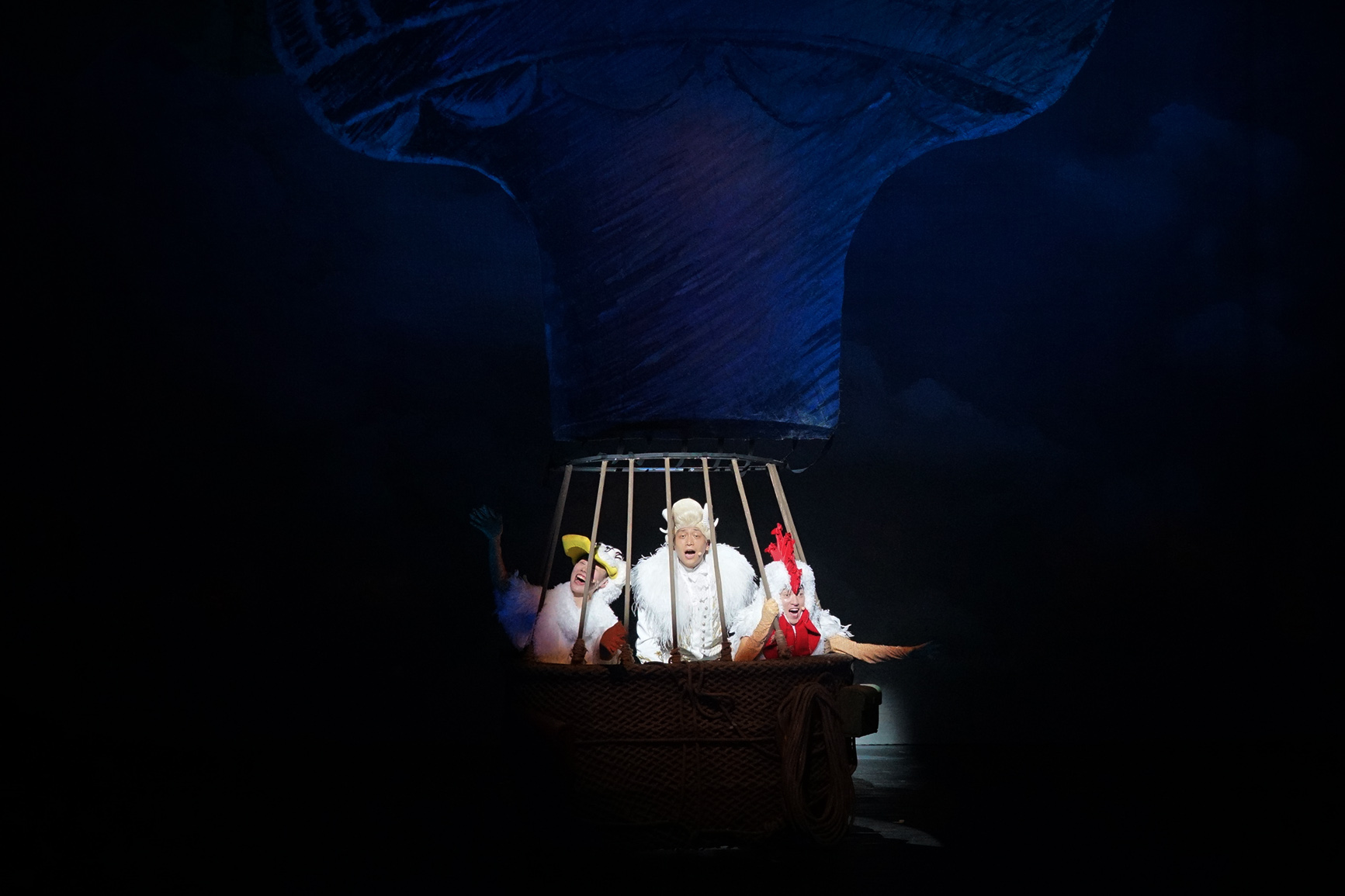 《毛毛帶你飛》整個舞臺就是一個巨大的“飛行實驗室”,舞臺上的每個角落都隱藏著不同時代的飛行器:巨大的紙鳶,大小不一的孔明燈,萬戶飛天的火箭椅,最古老的熱氣球……伴隨著故事的不斷發(fā)展,小朋友可以清晰地認識到飛行器是如何一點點進化和完善的。在美國萊特兄弟發(fā)明雙翼飛機“飛行者一號”的時候,舞臺上會飛出一架寬達8米的巨型雙翼飛機,讓小朋友近距離感受其所帶來的巨大震撼。