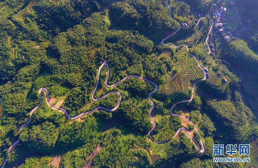 這是融水苗族自治縣桿洞鄉(xiāng)歸江村的村屯公路(6月19日無人機拍攝)。新華社記者 黃孝邦 攝