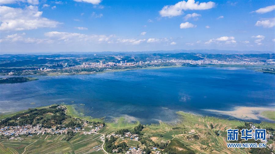 6月20日無人機拍攝的草海國家級自然保護區(qū)萬噸生活污水處理廠。 新華社記者 陶亮 攝