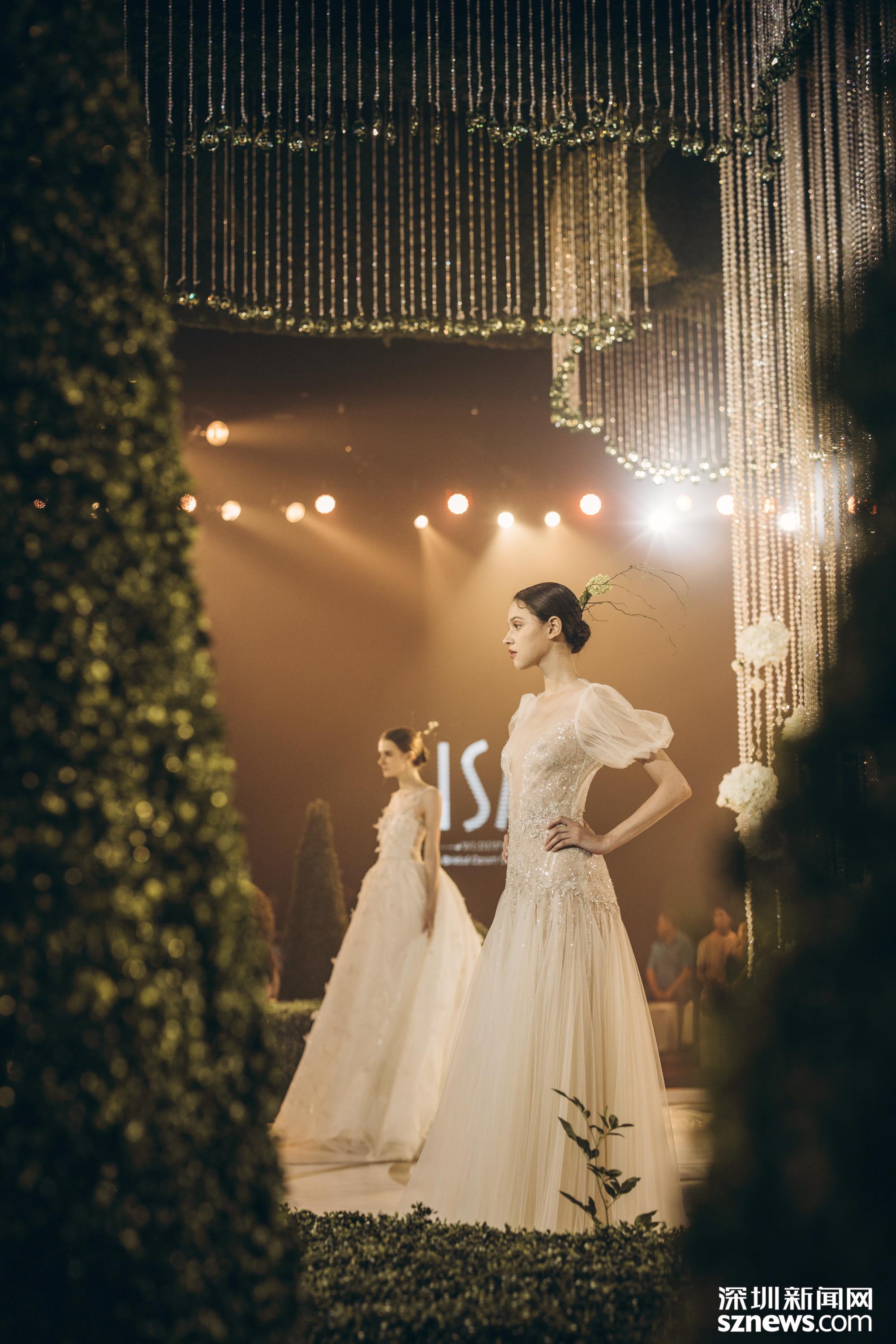 在秀場(chǎng)中相較于其他秋冬新品,以靈動(dòng)自然元素的Liz Martinez婚紗格外吸引眼球。這個(gè)新興婚紗設(shè)計(jì)師品牌,曾被余文樂(lè)微博婚照中其夫人王棠云所帶火而風(fēng)靡一時(shí)。而ISA衣紗作為L(zhǎng)iz Martinez婚紗品牌的首家代理,在此次發(fā)布會(huì)上推出的新品婚紗,更是凝聚了在場(chǎng)所有人的目光焦點(diǎn)。