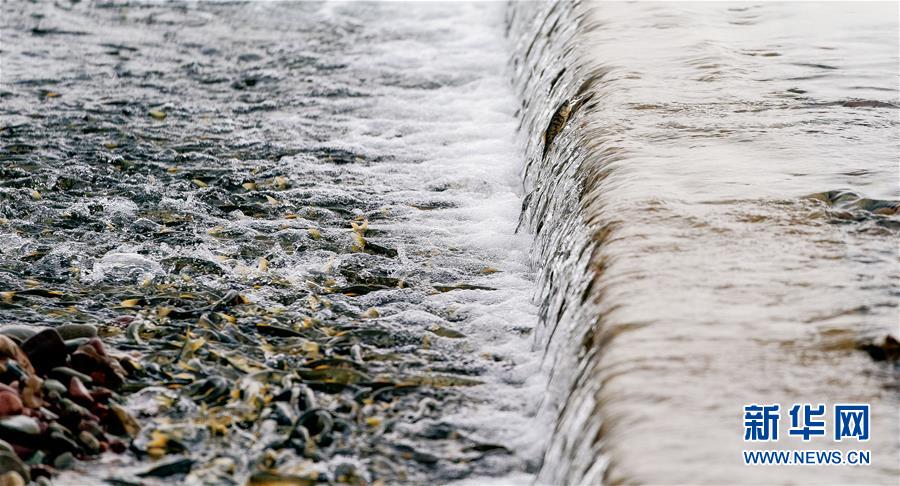 7月6日,青海省剛察縣沙柳河里的湟魚(yú)躍起向上洄游。 新華社記者 吳剛攝