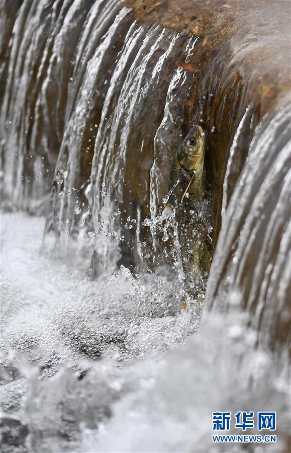 7月6日,青海省剛察縣沙柳河里的一條湟魚(yú)在洄游。 新華社記者 張宏祥攝
