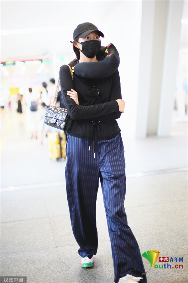 關(guān)曉彤淡定抱臂行走 脖子上掛U型枕毫無偶像包袱