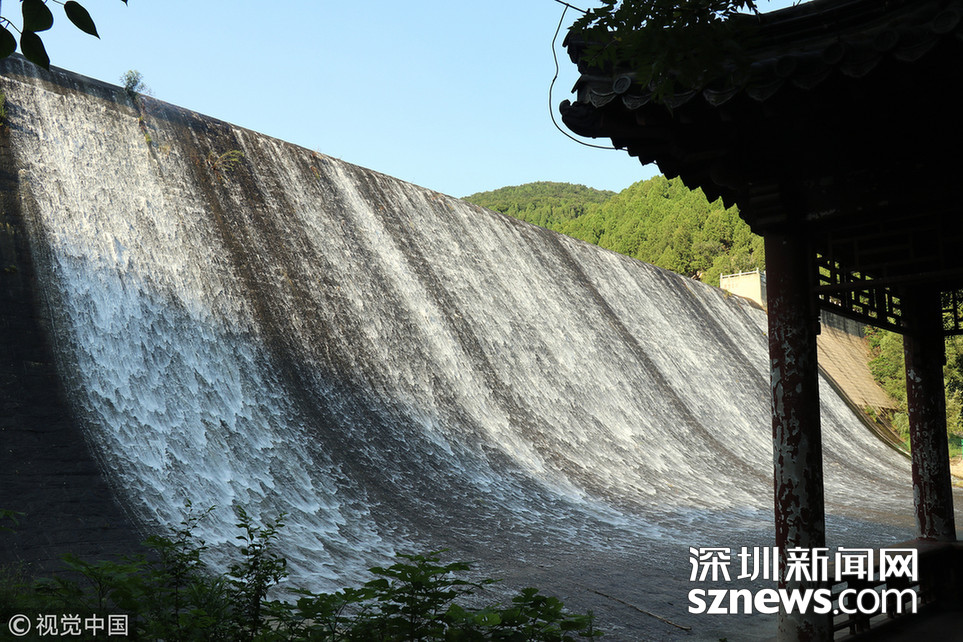2018年7月5日,湖北宜昌,江水通過(guò)三峽大壩泄洪深孔下泄。