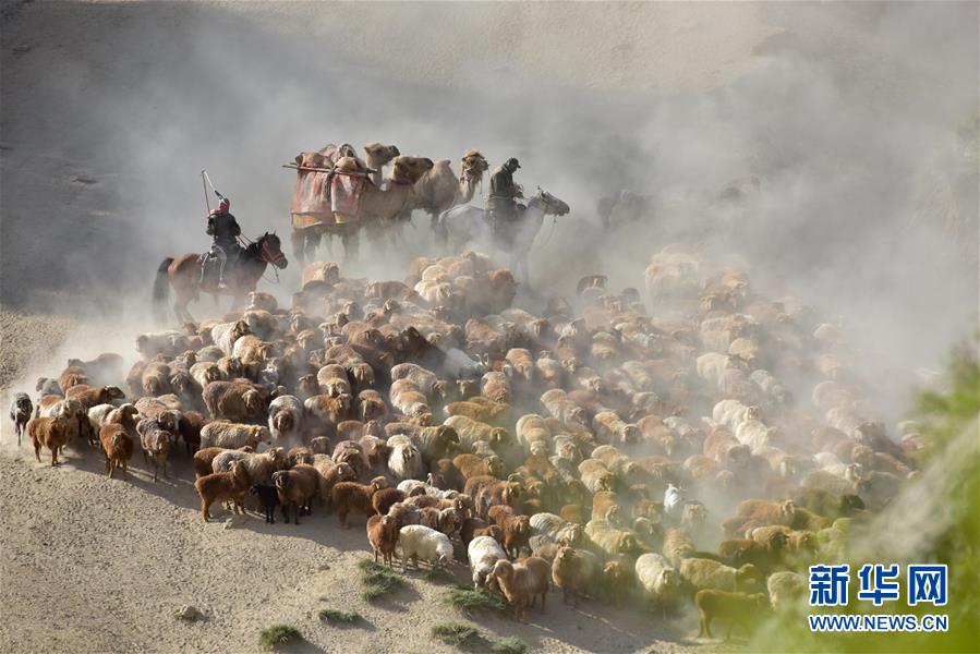 6月6日,新疆阿勒泰地區(qū)福??h牧民趕著牲畜向夏季牧場(chǎng)遷徙。 新華社記者 丁磊 攝