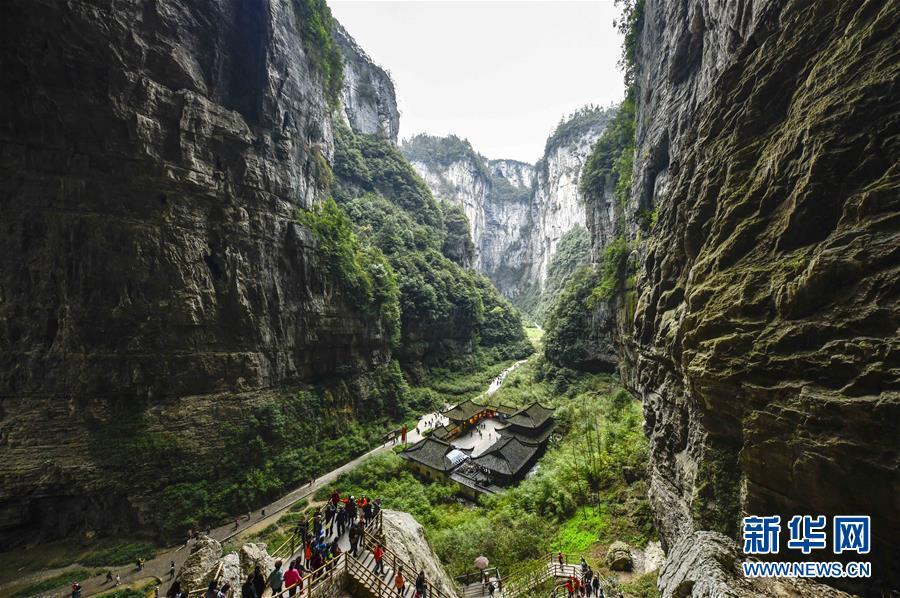 游客在天生三橋景區(qū)游覽(3月27日攝)。新華社記者劉潺攝