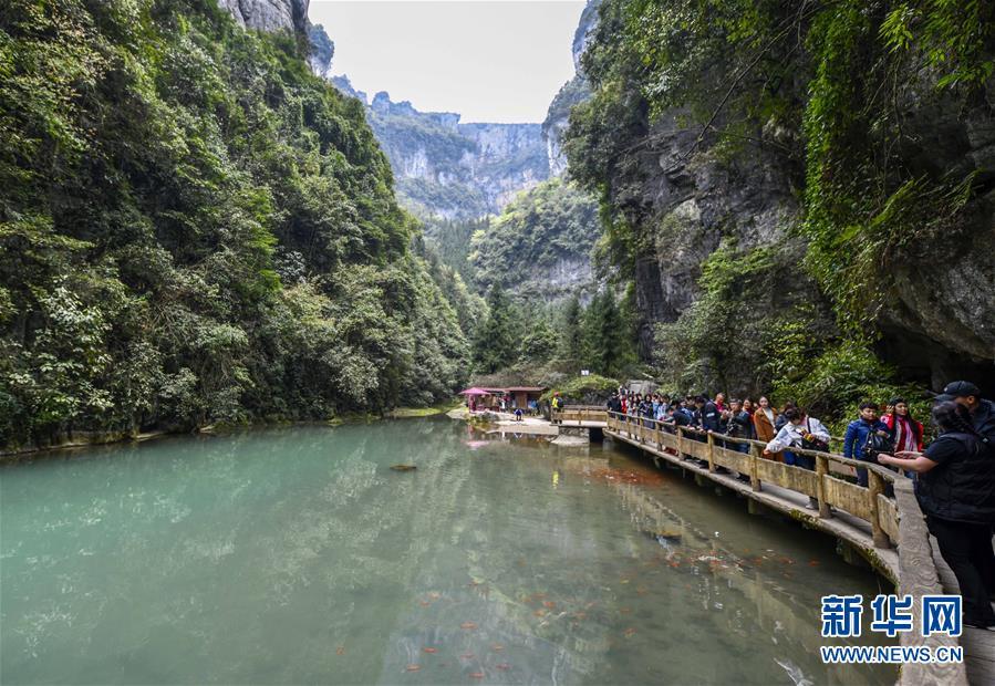 游客在天生三橋景區(qū)游覽(3月27日攝)。 新華社記者劉潺攝