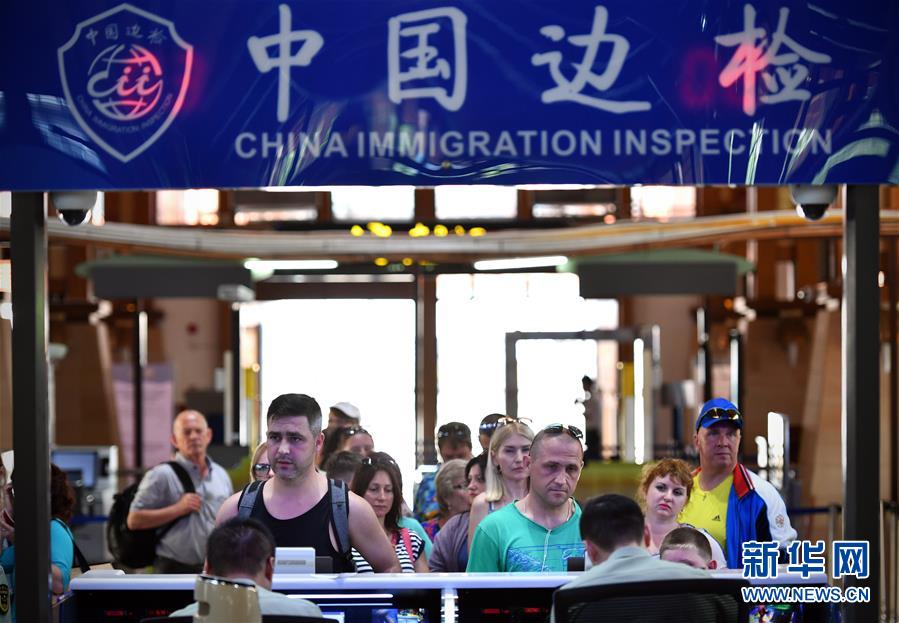 外國游客在三亞鳳凰國際機(jī)場(chǎng)通關(guān)入境(2018年6月1日攝)。新華社記者郭程攝