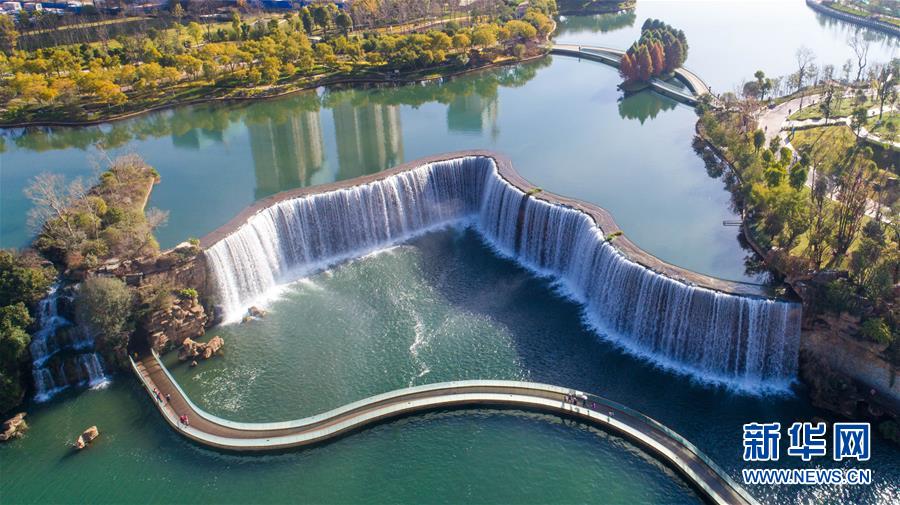 云南昆明瀑布公園一景(1月5日無(wú)人機(jī)拍攝)。 新華社記者胡超攝