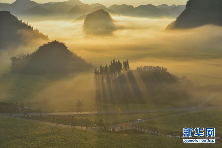 云南省羅平縣百萬畝油菜花田一景(2月19日無人機(jī)拍攝)。 新華社記者 秦晴 攝