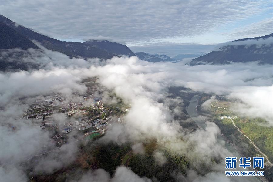 這是云海籠罩的西藏墨脫縣(4月9日無人機(jī)拍攝)。新華社記者 李鑫 攝