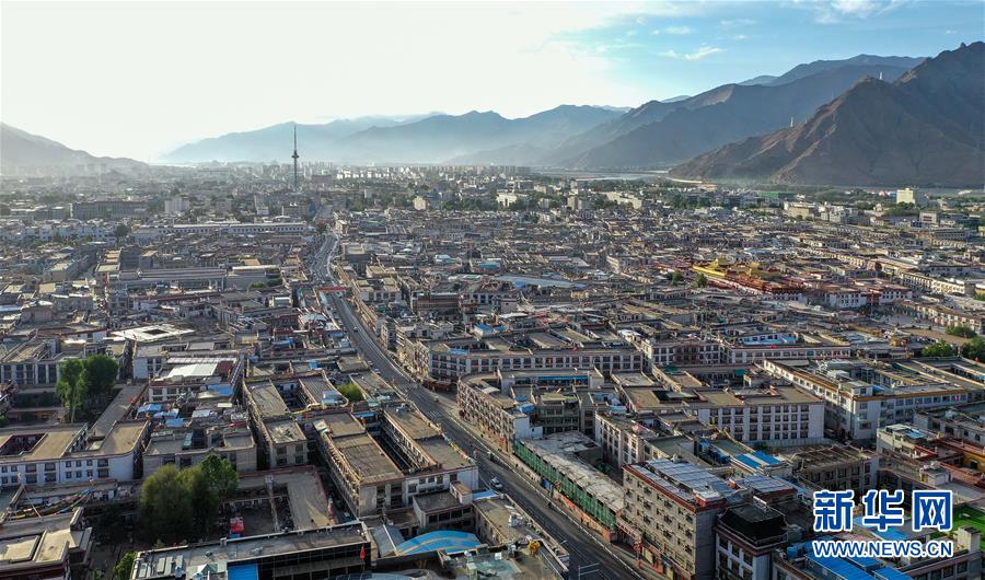 鳥瞰拉薩古城(5月16日無人機拍攝)。新華社記者 張汝鋒 攝