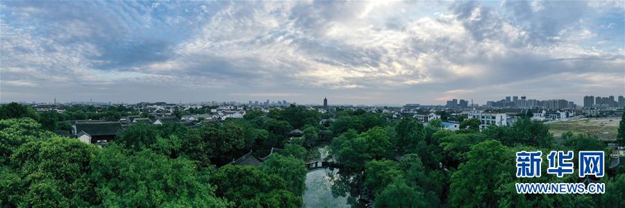 這是無人機(jī)拍攝的蘇州滄浪亭景色(5月10日攝)。 新華社記者 季春鵬 攝