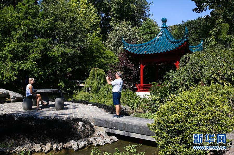 8月24日,在比利時(shí)布呂熱萊特市,游客在天堂動(dòng)物園具有東南亞風(fēng)情的園林區(qū)游玩。新華社記者 鄭煥松 攝
