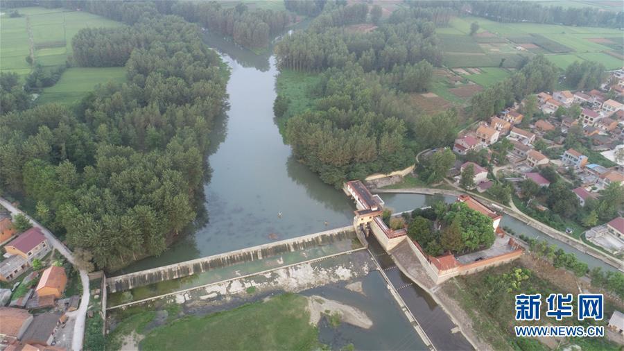 8月14日拍攝的湖北襄陽長渠渠首(無人機拍攝)。新華社記者 王虎 攝