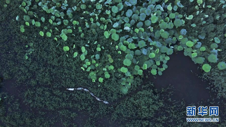 這是8月4日無(wú)人機(jī)拍攝的安徽黟縣宏村風(fēng)景區(qū)附近的荷塘。新華社記者張端攝