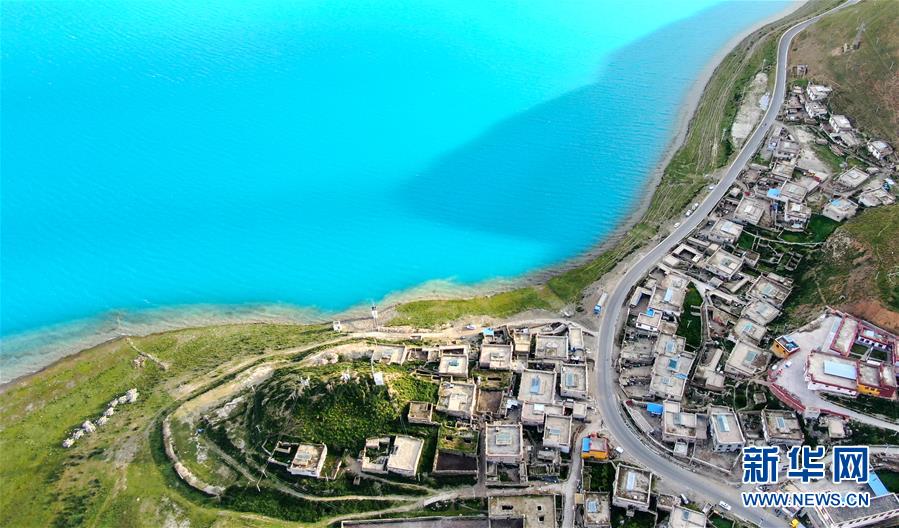 8月31日無人機(jī)拍攝的羊卓雍錯及周邊村落。新華社記者晉美多吉攝