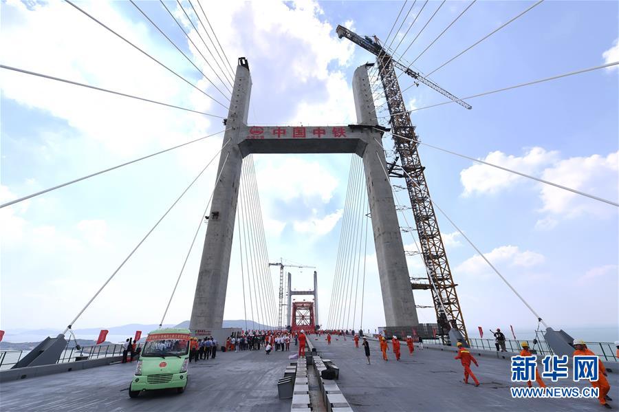 9月25日拍攝的平潭海峽公鐵大橋合龍貫通慶?;顒蝇F(xiàn)場。新華社記者林善傳攝