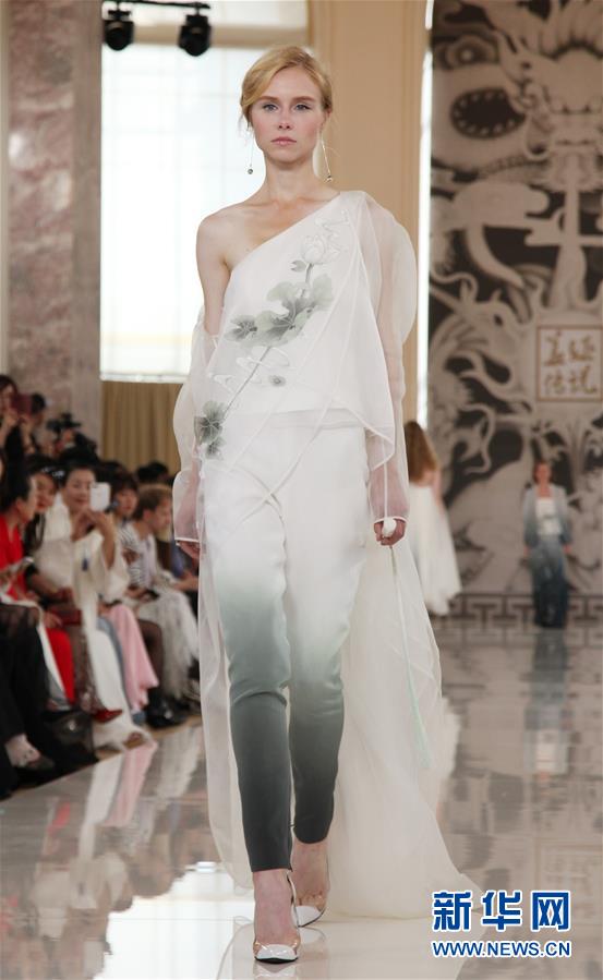 9月30日,在法國(guó)巴黎,模特展示中國(guó)高級(jí)女裝品牌“蓋婭傳說(shuō)·熊英”2020春夏新品。