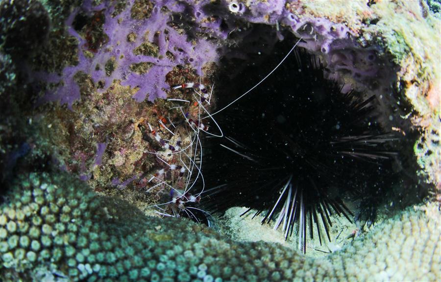 10月5日在分界洲島海域拍攝的美人蝦和海膽。新華社記者楊冠宇攝