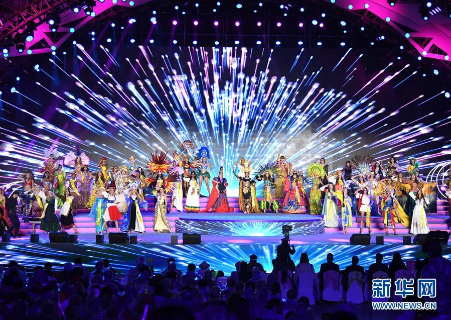 10月6日,選手在頒獎儀式上。 10月6日晚,2019世界旅游小姐全球總決賽頒獎盛典在山東青島舉行。來自67個國家和地區(qū)的佳麗在民族服裝、泳裝、晚裝以及才藝展示環(huán)節(jié)各展風(fēng)采,最終來自墨西哥和加拿大的兩名選手分獲冠亞軍,中國選手譚若依獲得季軍。 新華社記者 李紫恒 攝