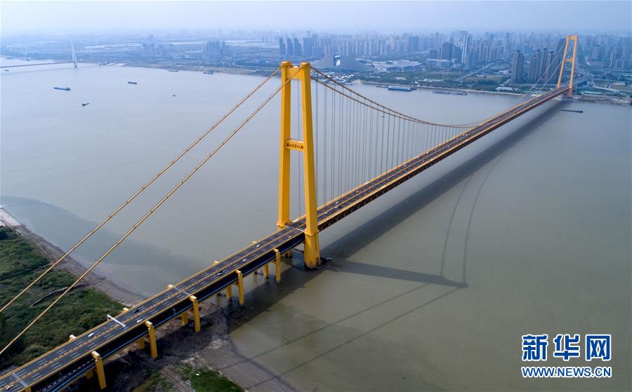 10月8日,武漢楊泗港長(zhǎng)江大橋正式通車(無人機(jī)拍攝)。當(dāng)日,長(zhǎng)江上首座雙層公路大橋——武漢楊泗港長(zhǎng)江大橋正式投入使用。楊泗港長(zhǎng)江大橋全長(zhǎng)4.13公里,主跨1700米,一跨過長(zhǎng)江。大橋上層為城市快速路,雙向6車道,設(shè)計(jì)行車時(shí)速80公里;下層為城市主干道,雙向6車道,設(shè)計(jì)行車時(shí)速60公里。新華社記者熊琦攝