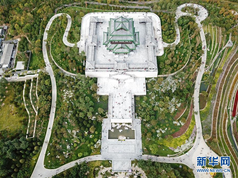 北京世園會(huì)園區(qū)內(nèi)的永寧閣(10月6日無人機(jī)拍攝)。新華社記者才揚(yáng)攝