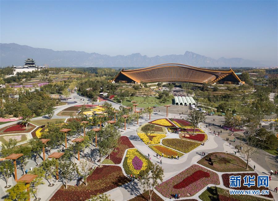 這是北京世園會(huì)園區(qū)一角(10月7日無(wú)人機(jī)拍攝)。 新華社記者 鞠煥宗 攝
