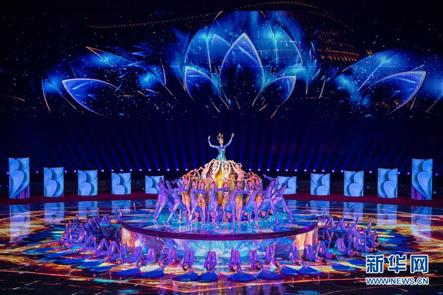10月9日,演員在節(jié)目“花開無界”中表演。當(dāng)日,2019年中國北京世界園藝博覽會閉幕式在北京舉行。新華社記者翟健嵐攝