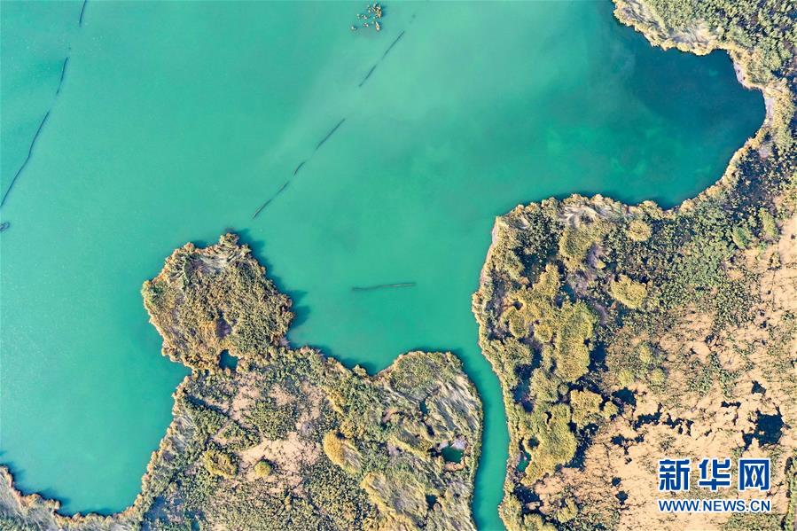 這是新疆博斯騰湖濕地一景(10月12日無(wú)人機(jī)拍攝)。入秋以來(lái),新疆博斯騰湖碧波蕩漾,美景如畫(huà),吸引各地游客前來(lái)游玩。新華社記者丁磊 攝