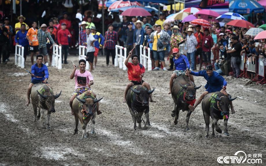 央視網(wǎng)消息:當(dāng)?shù)貢r(shí)間2019年10月12日,泰國(guó)春武里舉行一年一度的水牛賽跑,選手騎??癖肌R曈X(jué)中國(guó)