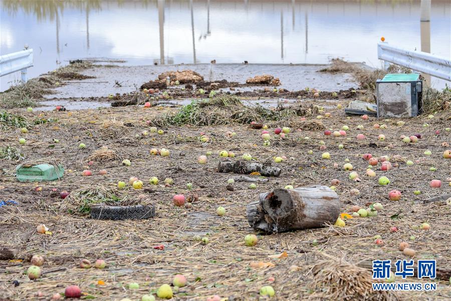 10月14日,在日本長野市,千曲川決堤后,水流侵襲了附近的蘋果樹。受縱貫東日本強(qiáng)臺風(fēng)“海貝思”帶來的強(qiáng)降雨影響,日本多地暴發(fā)洪災(zāi),已造成33人死亡、19人失蹤。據(jù)日本共同社13日統(tǒng)計,“海貝思”過境導(dǎo)致日本多處河流泛濫,目前有21條河流決堤24處。其中,流經(jīng)長野縣的千曲川決堤,造成長野市和千曲市大范圍被淹,大片住宅區(qū)被洪水包圍,有的房屋甚至被淹至2層。新華社記者華義攝