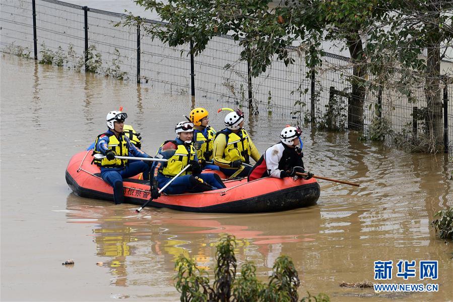 10月14日,在日本長野市,當(dāng)?shù)鼐仍藛T展開搜救工作。受縱貫東日本強臺風(fēng)“海貝思”帶來的強降雨影響,日本多地暴發(fā)洪災(zāi),已造成33人死亡、19人失蹤。據(jù)日本共同社13日統(tǒng)計,“海貝思”過境導(dǎo)致日本多處河流泛濫,目前有21條河流決堤24處。其中,流經(jīng)長野縣的千曲川決堤,造成長野市和千曲市大范圍被淹,大片住宅區(qū)被洪水包圍,有的房屋甚至被淹至2層。新華社記者華義攝
