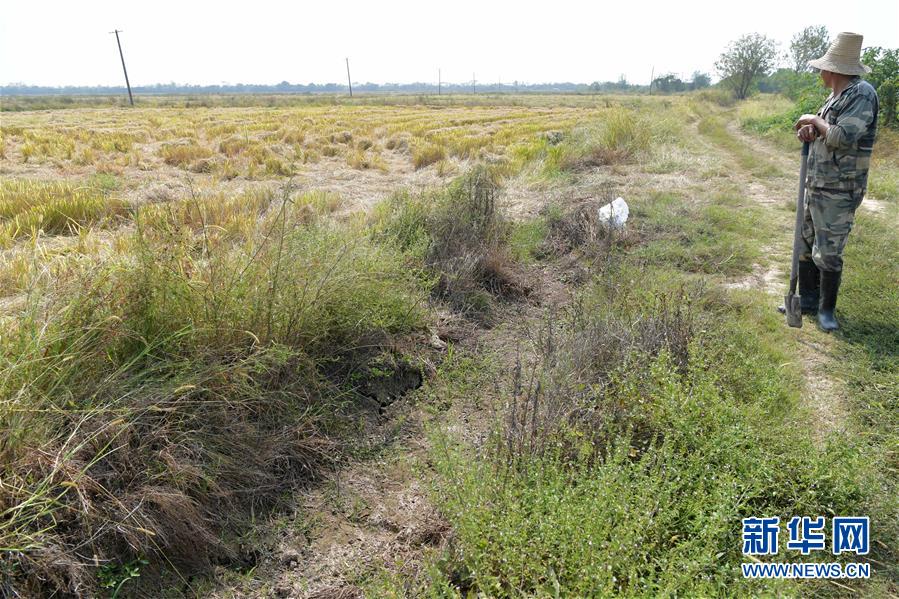 江西省南昌市南昌縣蔣巷鎮(zhèn)一農(nóng)戶在田里查看中稻的收割情況和晚稻的生長情況,農(nóng)田兩側(cè)的水渠已干涸多日(10月10日攝)。 7月下旬至10月初,江西省平均降雨量為96毫米,比多年均值偏少約七成,排歷史同期倒數(shù)第一位,持續(xù)的少雨天氣導(dǎo)致江西省主要江河水位持續(xù)走低,多地出現(xiàn)不同程度的旱情。 針對當前旱情,江西各地紛紛采取措施,積極組織群眾開展抗旱自救,力爭將旱情帶來的損失降到最低。 新華社記者 彭昭之 攝
