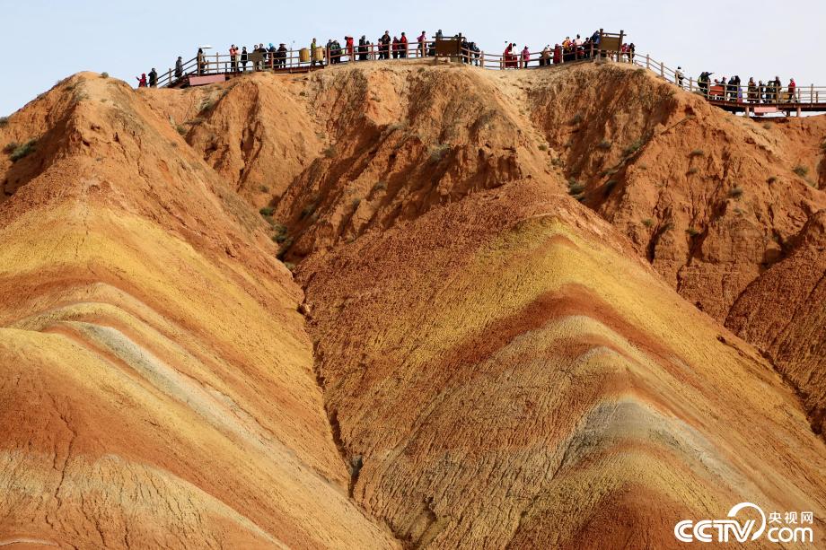 央視網(wǎng)消息:2019年10月15日,金秋時(shí)節(jié),位于甘肅省張掖市臨澤縣的七彩丹霞景區(qū)進(jìn)入旅游旺季,吸引眾多游人紛至沓來(lái)。張掖七彩丹霞景區(qū),分布面積約50公里,是中國(guó)北方干旱地區(qū)發(fā)育最典型的丹霞地貌。在方圓數(shù)十平方公里的范圍內(nèi),隨處可見(jiàn)有紅、黃、橙、綠、白等多種鮮艷的色塊或線條,把一座座山峰,一條條溝壑,裝點(diǎn)成一幅幅絢麗多姿、燦爛奪目的畫(huà)圖。圖片來(lái)源:視覺(jué)中國(guó)