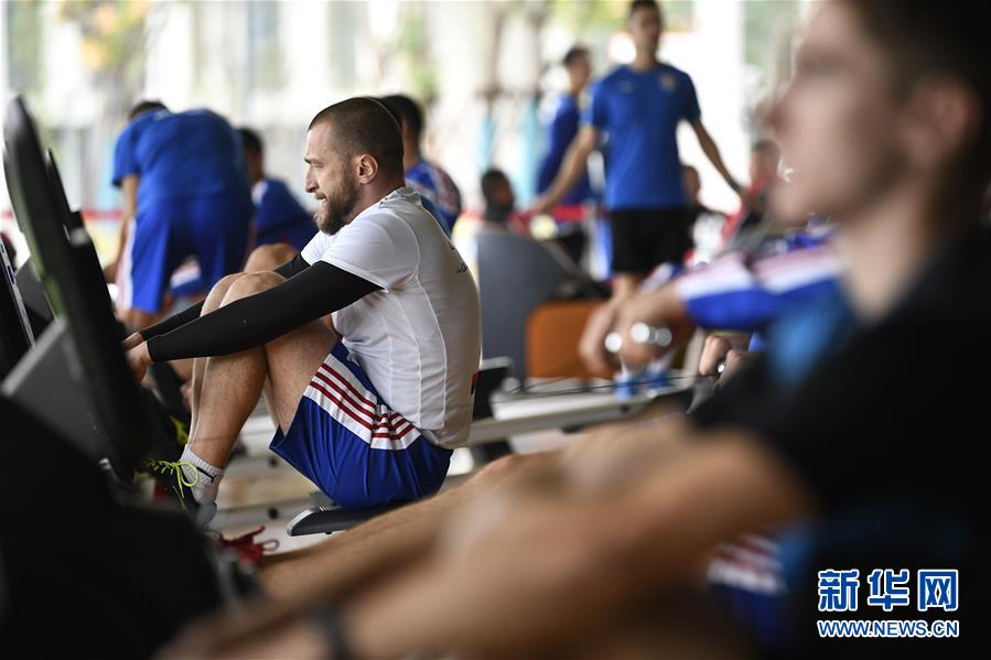 10月16日,運動員在軍運村內(nèi)的健身中心鍛煉。新華社記者王鵬攝