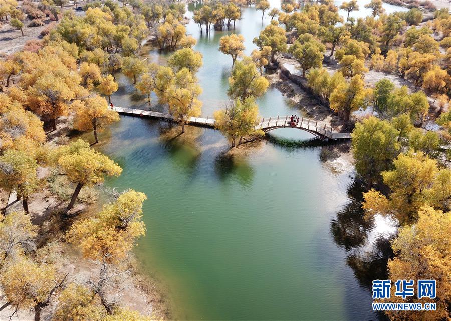 這是在內蒙古自治區(qū)額濟納旗拍攝的胡楊林(10月16日無人機拍攝)。新華社記者丁洪法攝
