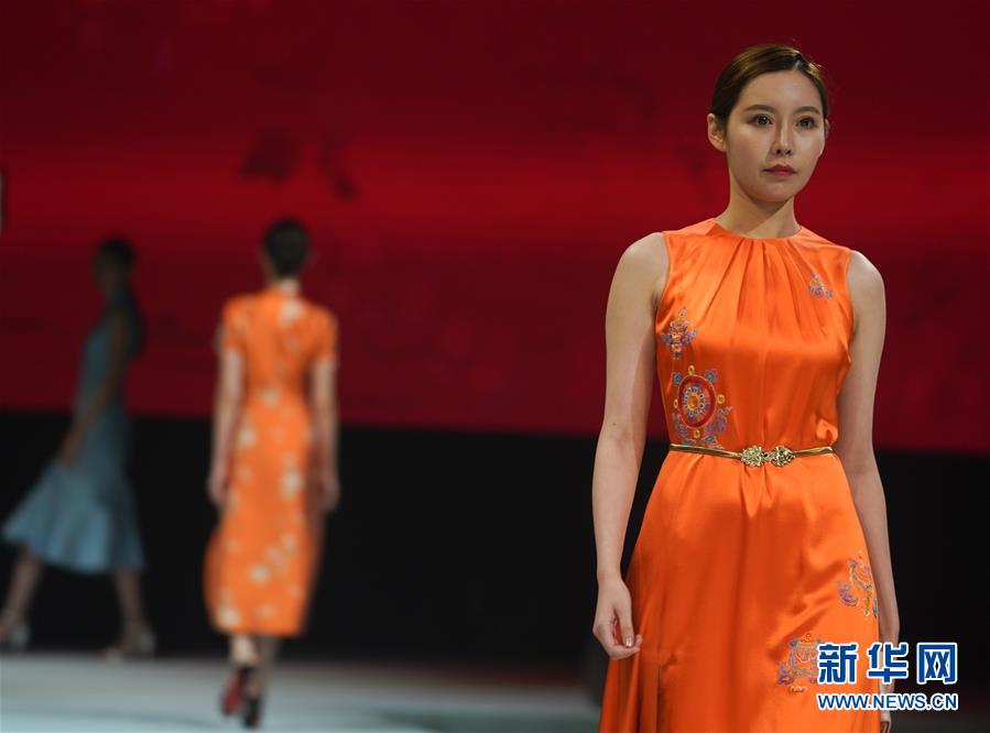 10月16日,模特在展示婚慶禮服。 當(dāng)日,“愿·緣·圓”上久楷婚慶主題秀在江蘇省蘇州市吳江區(qū)盛澤鎮(zhèn)舉行。新華社記者 季春鵬 攝