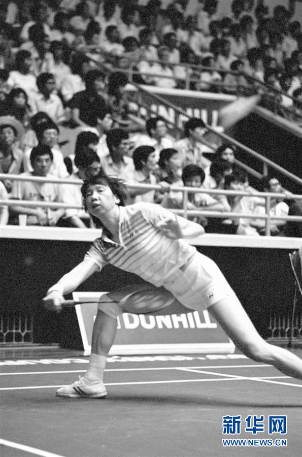 圖為韓愛萍在福州舉行的1986年“登喜路”中國羽毛球公開賽女子單打決賽中擊球(1986年6月1日攝),她最終奪得女單冠軍。新華社記者官天一攝