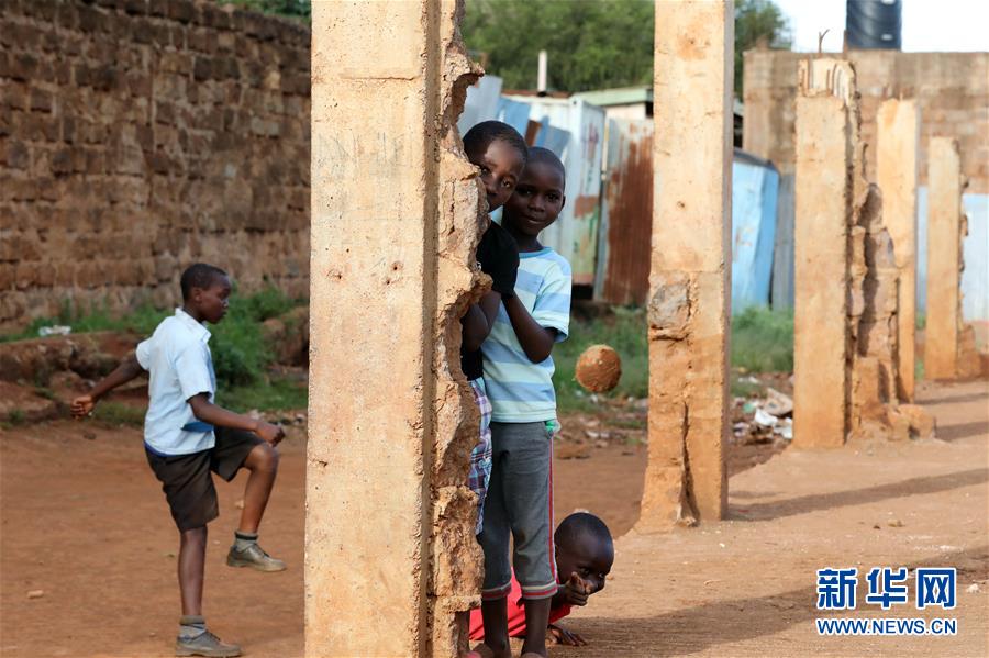 10月16日,在肯尼亞內(nèi)羅畢基貝拉貧民窟,孩子們在放學(xué)后玩耍。新華社記者王騰攝