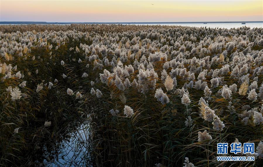 這是10月17日拍攝的居延海岸邊的蘆葦蕩。 新華社記者 彭源 攝