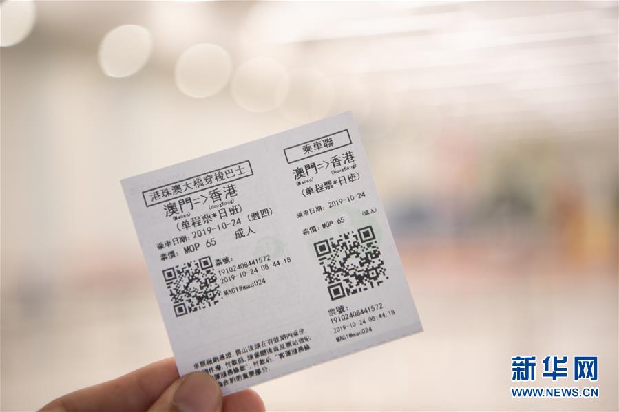 這是澳門(mén)往香港方向的港珠澳大橋穿梭巴士車(chē)票(10月24日攝)。2018年10月23日,港珠澳大橋正式開(kāi)通。新華社記者張金加攝