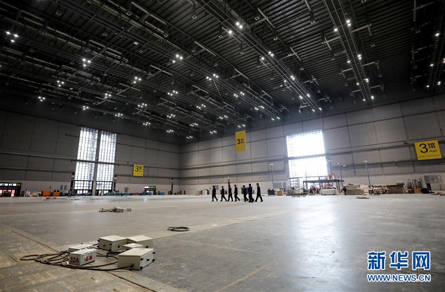 10月25日,在展館內(nèi),展臺(tái)框架搭建工作正在進(jìn)行。 新華社記者 方喆攝