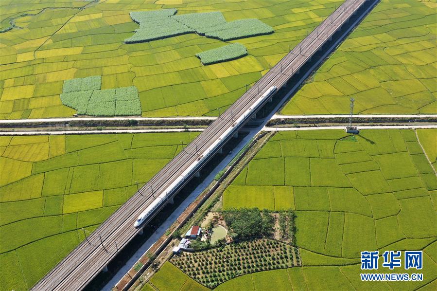 眼下,廣西賓陽(yáng)縣古辣鎮(zhèn)大面積稻田進(jìn)入收獲期,一列列南來(lái)北往的動(dòng)車(chē)從稻田間飛馳而過(guò),構(gòu)成一幅幅美麗的豐收?qǐng)D畫(huà)。