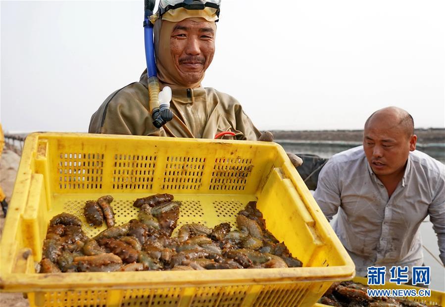 河北樂亭:收獲海參