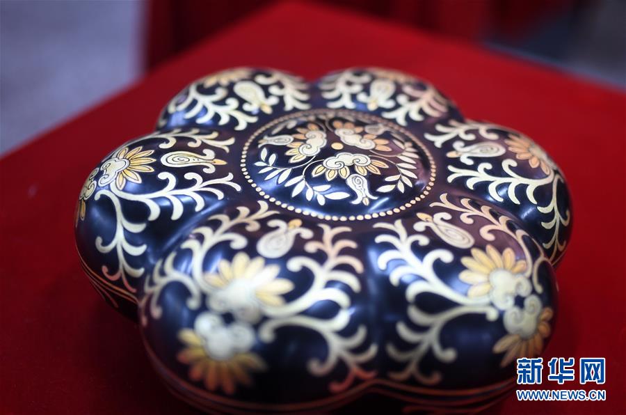 這是北京金漆鑲嵌有限責(zé)任公司技師制作的金漆鑲嵌作品(10月31日攝)。新華社記者李欣攝