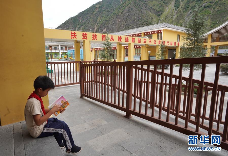 在大興地鎮(zhèn)維拉壩“珠海小區(qū)”小學(xué),一名學(xué)生在翻閱圖書(6月24日攝)。新華社記者秦晴攝