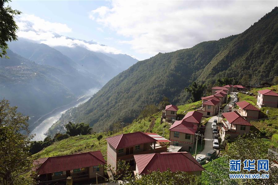 獨(dú)龍江鄉(xiāng)孔當(dāng)村的獨(dú)龍族新居(2016年11月23日攝)。新華社記者藺以光攝