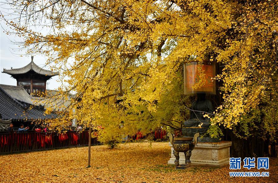 11月11日拍攝的羅漢洞村古觀音禪寺內(nèi)的千年銀杏樹。新華社記者劉瀟攝